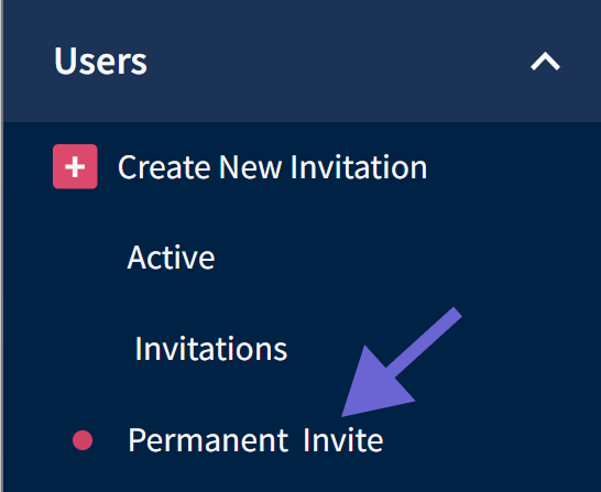 Begin by selecting Permanent Invite from the 'Users' drop-down menu: