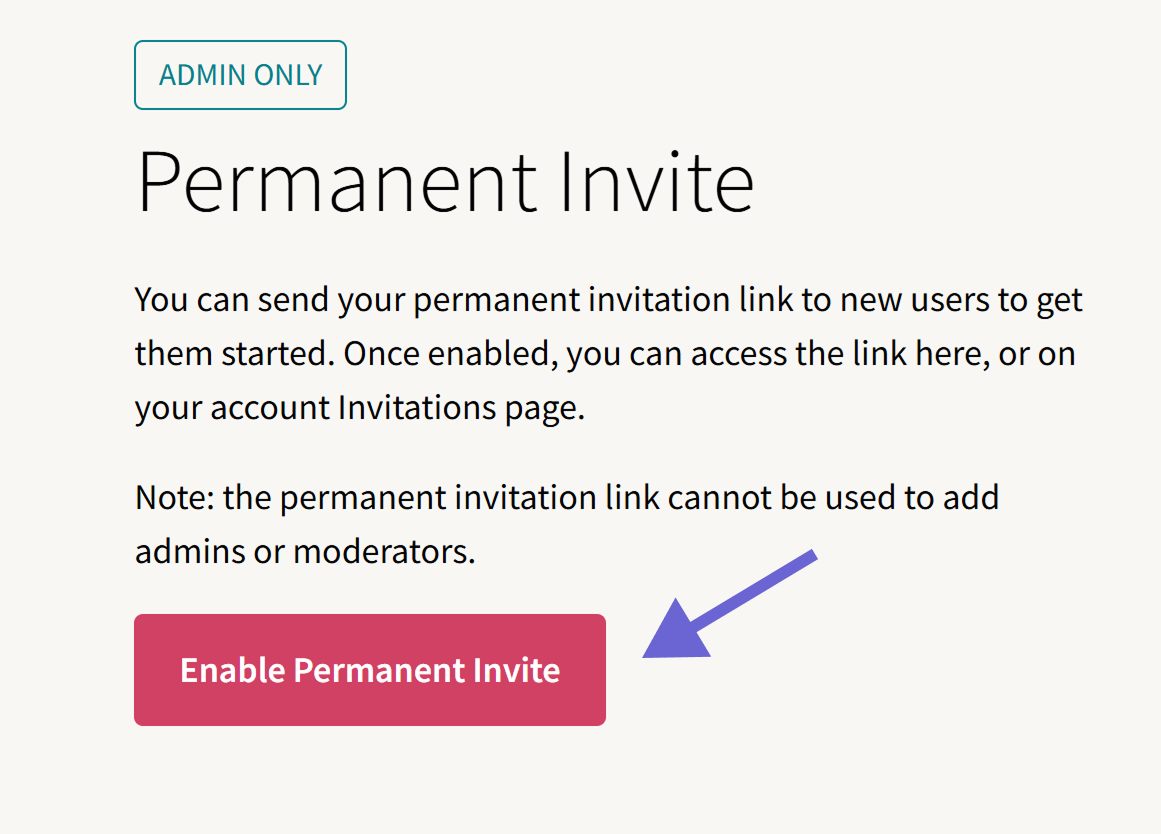 To add the Permanent Invite link to your account, click the Enable Permanent Invite button: