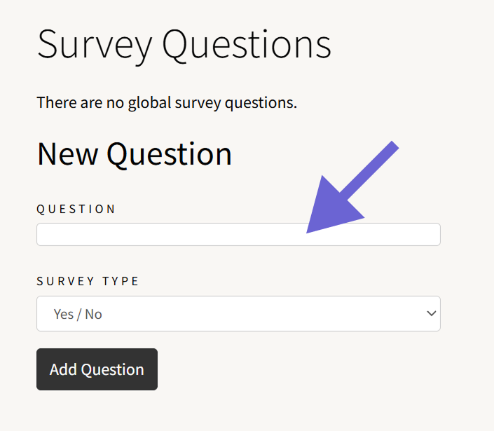 You can add a global survey question to your campaign during the Surveys step of campaign creation. You can see the steps for getting to this page in the section How to Create Survey Questions in your Campaign below.