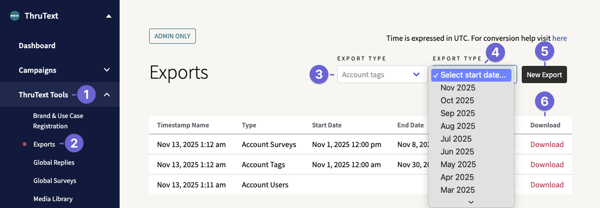 By applying tags to your ThruText campaigns, you can generate monthly Tag Report exports that show a breakdown of usage by campaign and tag. These reports give you a high-level summary of conversations and message volume each month, so you can see exactly how much activity is associated with each tag.