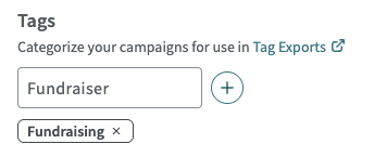 - Active, Paused, and Archived Campaigns: Open the campaign's details page and find the Tags field below the targeting section and above the action buttons.